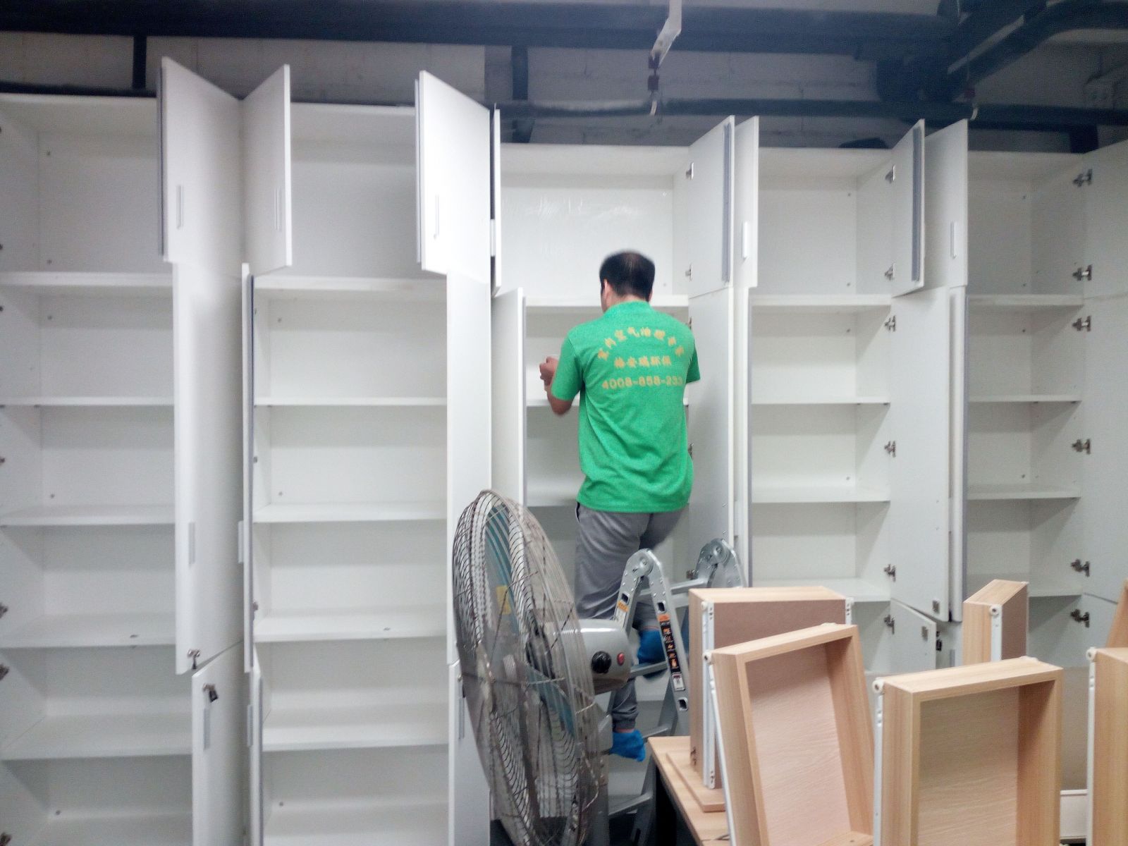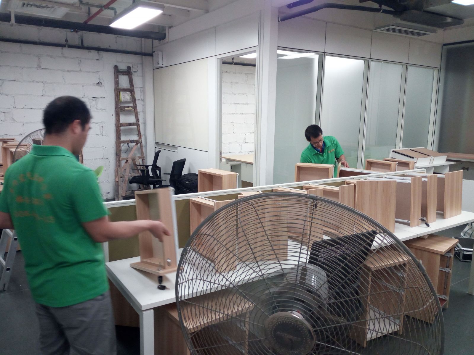 室內(nèi)的人造板辦公桌椅較多,這會(huì)揮發(fā)出一定的甲醛污染,需全面治理,這也是本次治理的一大重點(diǎn)所在。首先,格安瑞工程師把室內(nèi)的抽屜進(jìn)行拆除,并整齊排列,以便施工的順利進(jìn)行。
