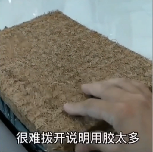 大家都覺(jué)得,棕是天然的材料,會(huì)很環(huán)保,而實(shí)際上棕纖維是什么?棕纖維就像是山上長(zhǎng)的野草,那么粗的纖維,想要讓它們服服帖帖做床墊,只能用膠來(lái)固定。