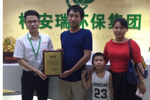 2016年6月份李先生接觸我們格安瑞環保集團,通過親自考察、了解,于9月9日在我司深圳總部成功簽約,感謝李先生對我們格安瑞的信任!在此,深圳格安瑞環保集團恭祝李先生生意興隆,財源廣進,闔家幸福。