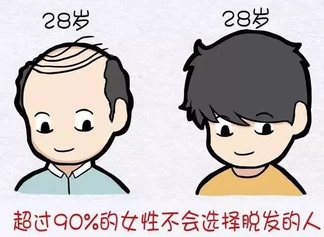 曾經有人做過一項調查,結果顯示有超過90%的女性不會選擇脫發的人作為自己的男朋友。并且有人將一位男士的照片P成了兩個樣子,一個是頭發濃密的樣子,一個是頭發稀疏的樣子,放在女性網站上,結果頭發濃密者受歡迎的程度遠遠高于脫發者。