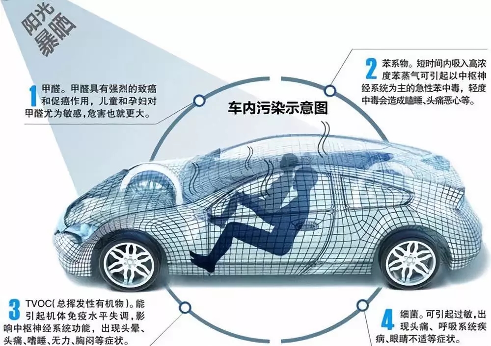 常見的車內污染物有什么呢?甲醛相信大家都不會感到陌生,甲醛是室內裝修后常見的污染物,因為甲醛可以用于制作粘合劑,而粘合劑又是組裝汽車內飾時不可缺少的原料,所以,新車內也會出現甲醛殘留,導致甲醛超標污染。